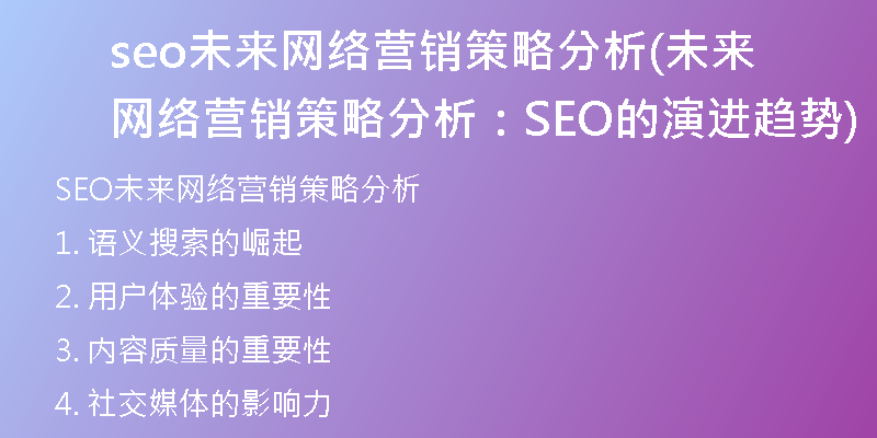 SEO未來網(wǎng)絡(luò)營銷策略分析