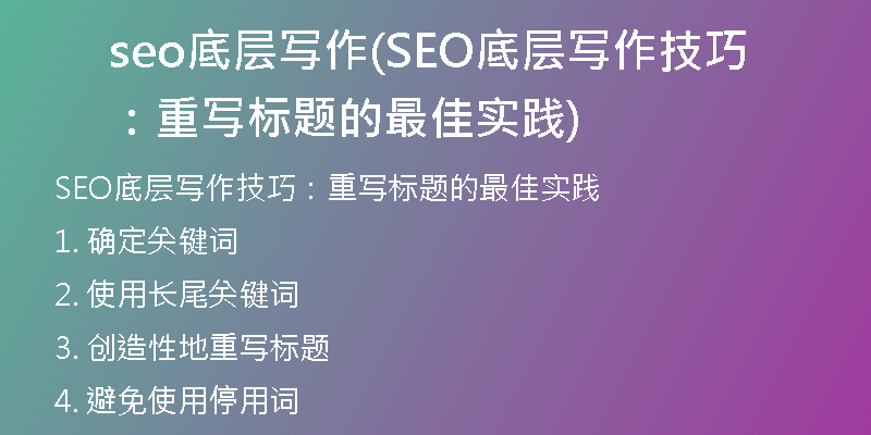2024-03-17站長百科SEO底層寫作技巧:重寫標題的最佳實踐在當今數(shù)字營銷時代,搜索引擎優(yōu)化(SEO)是一項不可或缺的技術(shù)。而標題作為網(wǎng)頁內(nèi)容的重要組成部分,對于SEO來說尤為重要。通過優(yōu)化標題,您可以提高網(wǎng)站在搜索引擎結(jié)果頁面的排···