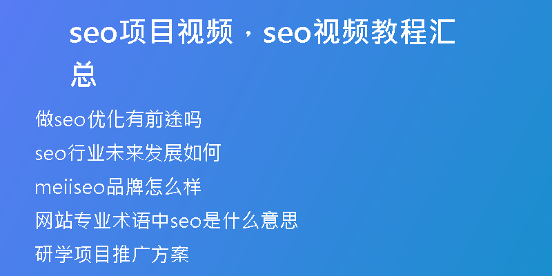 各位老鐵們好,相信很多人對(duì)seo項(xiàng)目視頻都不是特別的了解,因此呢,今天就來(lái)為大家分享下關(guān)于seo項(xiàng)目視頻以及seo視頻教程匯總的問(wèn)題知識(shí),還望可以幫助大家,解決大家的一些困惑,下面一起來(lái)看看吧!做seo優(yōu)化有前途···